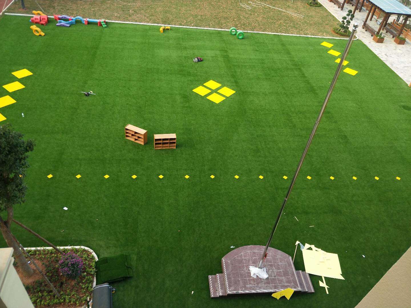 福建漳州市南靖縣兒童公園游樂園選用的綠達產(chǎn)品來鋪裝,綠色的人造草和黃色的人造草鋪在一起比較和諧,視覺上也飽滿,可以供小朋友在上面隨意玩耍。